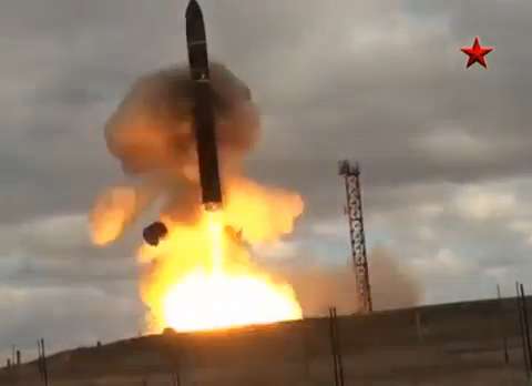TV Zvezda - R-36M2 Voivode (SS-18 Satan Mod 5-Mod 6) ICBM launched from silo.