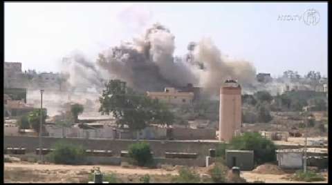 Egyptian forces on Sunday (October 13) blew up a house suspected of hiding a tunnel near the Gaza border, Palestinian