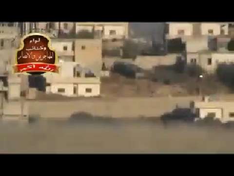 Part 1 - Syrian rebels engage two SAA tanks with antitank missiles. 10/02/2013.