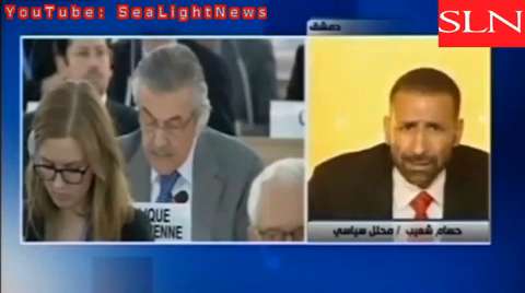 Syrian state television footage shows the moment two car bombs exploded near the broadcaster's headquarters in Damascus on Sunday. Hussam
