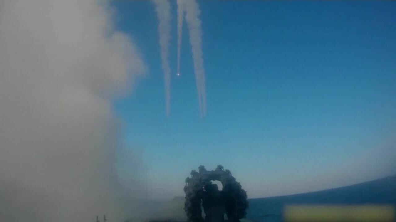 The Russian Defence Ministry shared on Thursday footage of what it claimed were sea-launched Kalibr cruise missiles. (April 7) AP