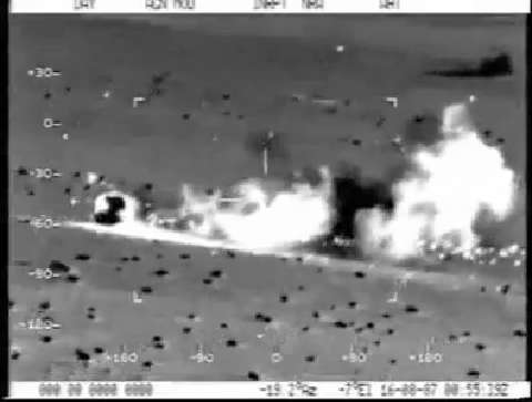 Skip to the 0:14 sec mark for the action. Dead on FLIR TOW shot! And they keep on raining down