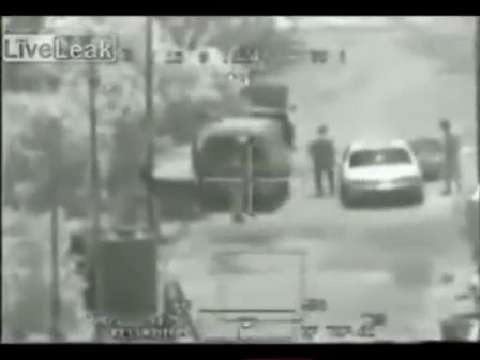 A Predator UAV takes out insurgents with Hellfire missiles. The UAV spots insurgents firing on troops and proceeds to eliminate