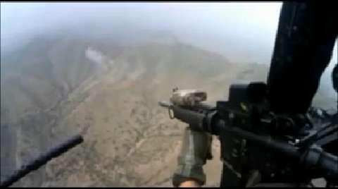 WARNING EXPLICIT LANGUAGE: Kiowa engages a Taliban position from above in Afghanistan.