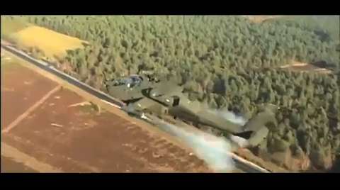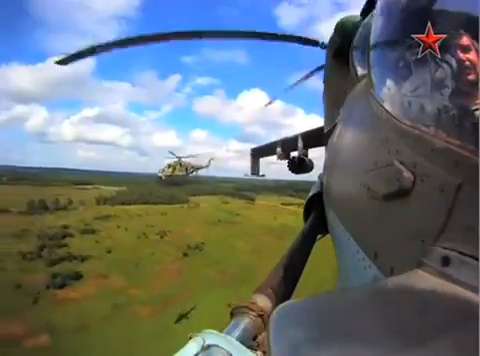 Footage shot from a Go-Pro HD camera mounted on a Russian Mi-24 gunship.