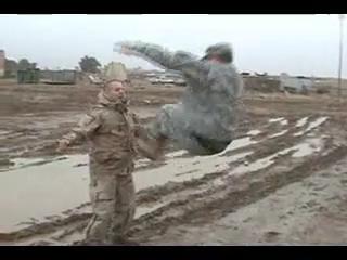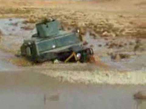 Bored soldiers in Iraq drive a humvee through a deep puddle.