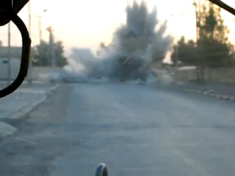 Free Syrian Army IED and Ambush on Assad Armored Vehicle (Homs,Syria) -- (February 8th, 2012) An Assad armored vehicle takes