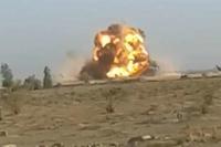 An alleged ISIS position is taken out on the battlefield during a firefight.
