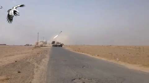 Kataib Hezbollah militia fire a 10 Barrel IRAM Launcher at ISIS positions.