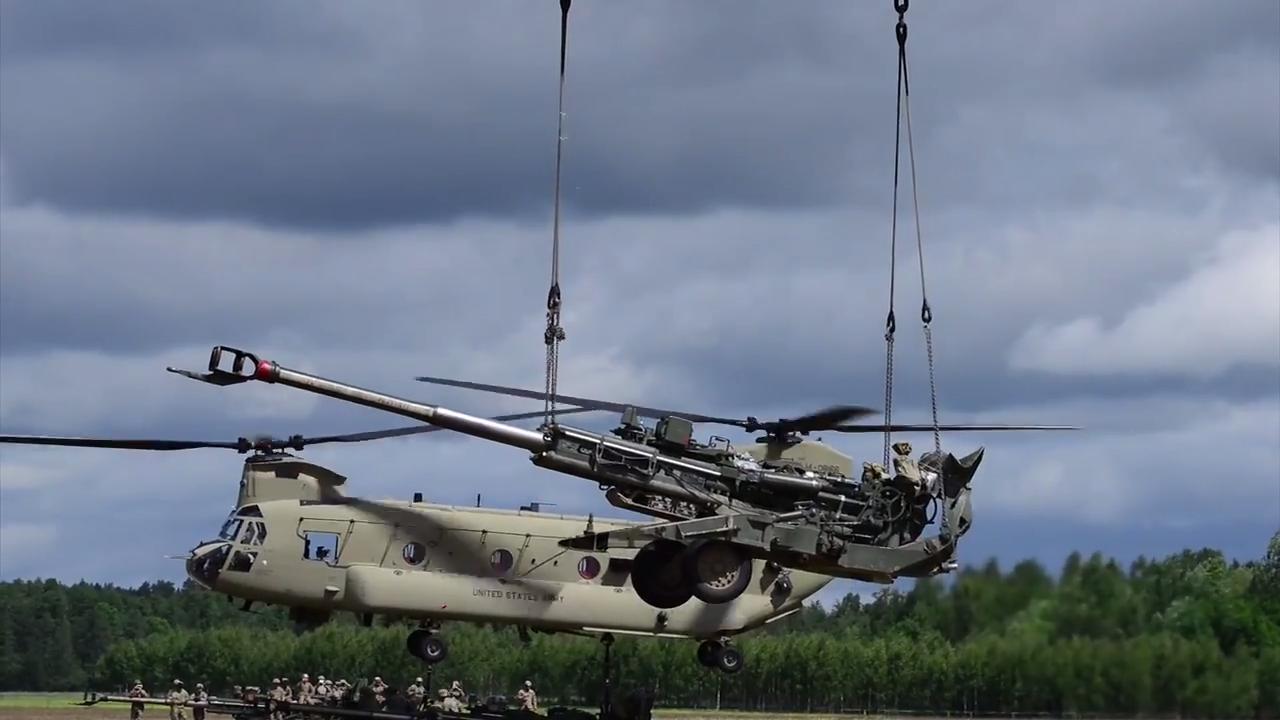 Battle Group Poland U.S. Soldiers conduct sling-load training with the M777 Howitzer near the Bemowo Piskie Training Area during Saber
