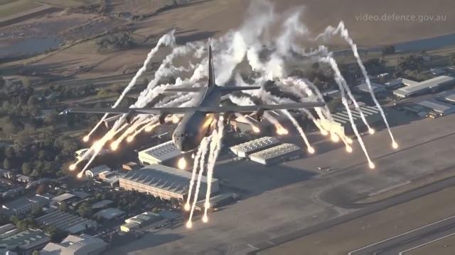 Awesome footage of a C-130J flare drop over RAAF Base Richmond.
