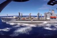 Amphibious assault ship USS Boxer (LHD-4) takes on food and supplies during a replenishment-at-sea (RAS) with fleet replenishment oiler USNS