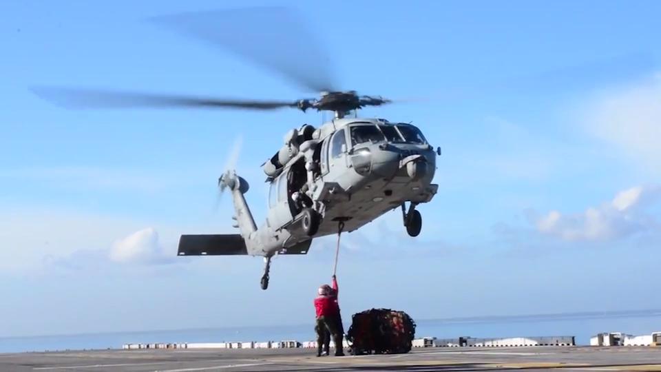 Helicopter Sea Combat Squadron 28, Marine Medium Tiltrotor Squadron 162 and the 26th Marine Expeditionary Unit embark the amphibious assault