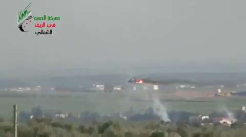 Syrian rebels shoot down a second helicopter in a week near near Menagh airbase by Aleppo. This one falls below