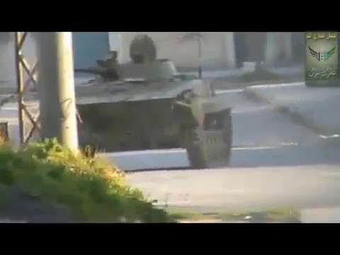 Syrian rebels hit a Syrian Army *tank with a large IED around the 16 second mark. Some ten seconds later