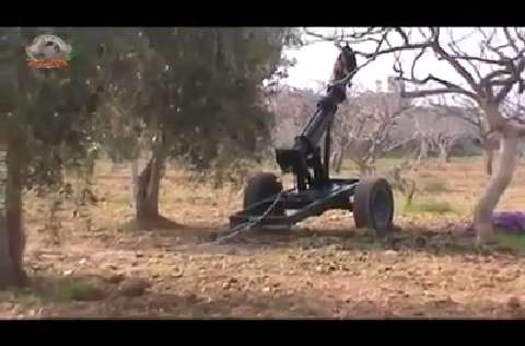 Syrian rebels fire off their homemade cannon in Aleppo. 12/03/2012.