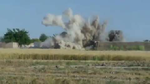 From the cameraman: "This was a Taliban camp littered with booby traps, so we blew it up an named it