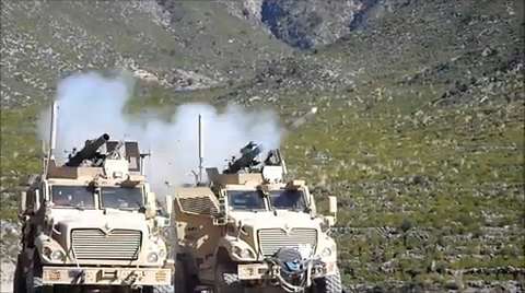 2 Canadian LAV-3's firing at Taliban fighters who were setting up IED's (the white figures seen at the beginning).