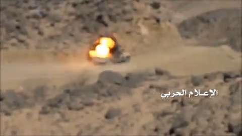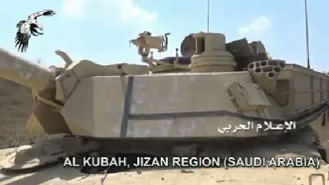 Houthi fighters capture a Saudi M1 Abrams tank after the crew abandons it. The Houthis then destroy the tank.