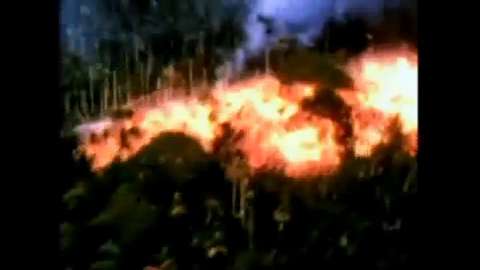 In 1968, US troops stage assault on Vietcong near Tan Son Nhut Airbase. Footage includes US helicopter attacking a village
